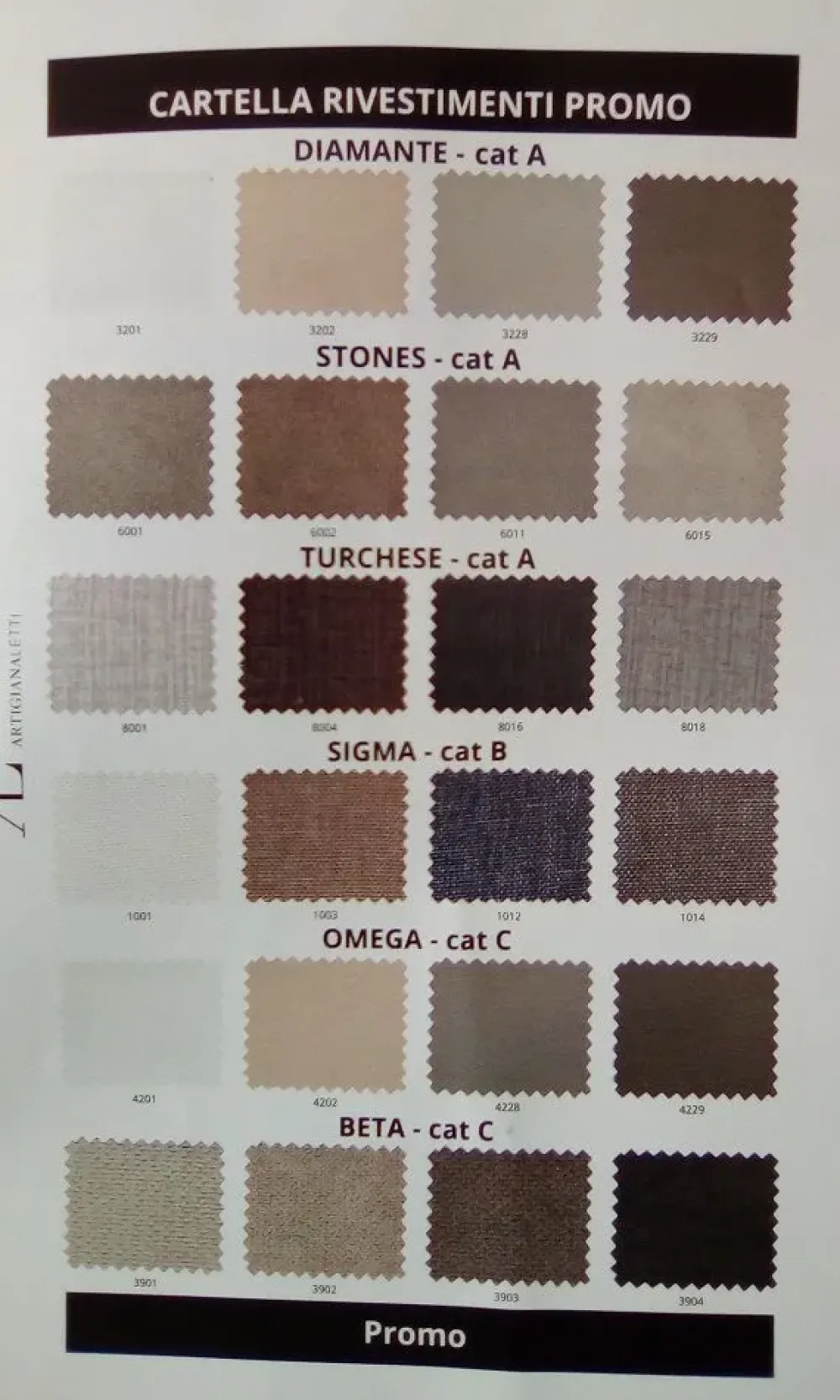 Letto matrimoniale imbottito con testiera sagomata. E’ disponibile nei diversi rivestimenti a scelta del campionario-promo,sia in Ecopelle e sia in Tessuto. Viene prodotto con materiali di alta qualità. Le sue dimensioni d’ingombro sono di: cm.174 larghezza x cm.205 profondità x cm.100 altezza della Testiera. E’ un modello di Letto dalla linea moderno/classica che permette un agevole inserimento in qualsiasi contesto d’arredo,in virtù del suo design sobrio ed elegante. Viene proposto nella soluzione in promo,con lo sconto del 50%. Per qualsiasi informazione,potete contattarci attraverso il nostro indirizzo di posta elettronica.