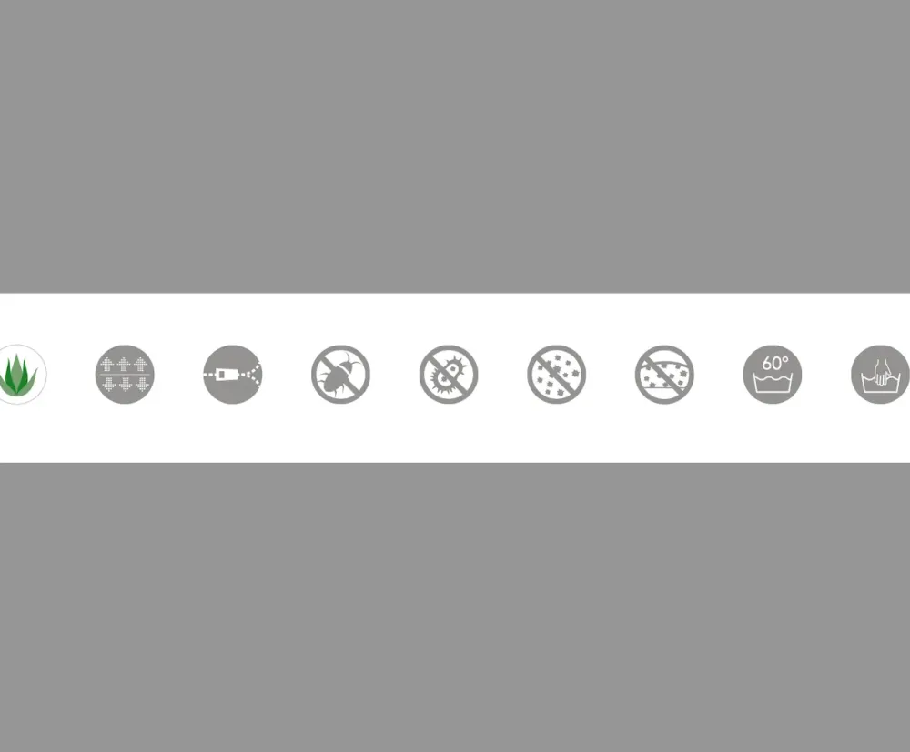 Tante le virtù dell’Aloe, famosa pianta dalle mille proprietà. Rigenerante, disintossicante, analgesica e antinfiammatoria. Il tessuto del rivestimento è trattato con milioni di microcapsule di Aloe vera. Dallo sfregamento e dal contatto del corpo sul piano letto le microcapsule rilasciano 75 sostanze benefiche per una piacevole sensazione idratante e di comfort con effetti rivitalizzanti e antistress.