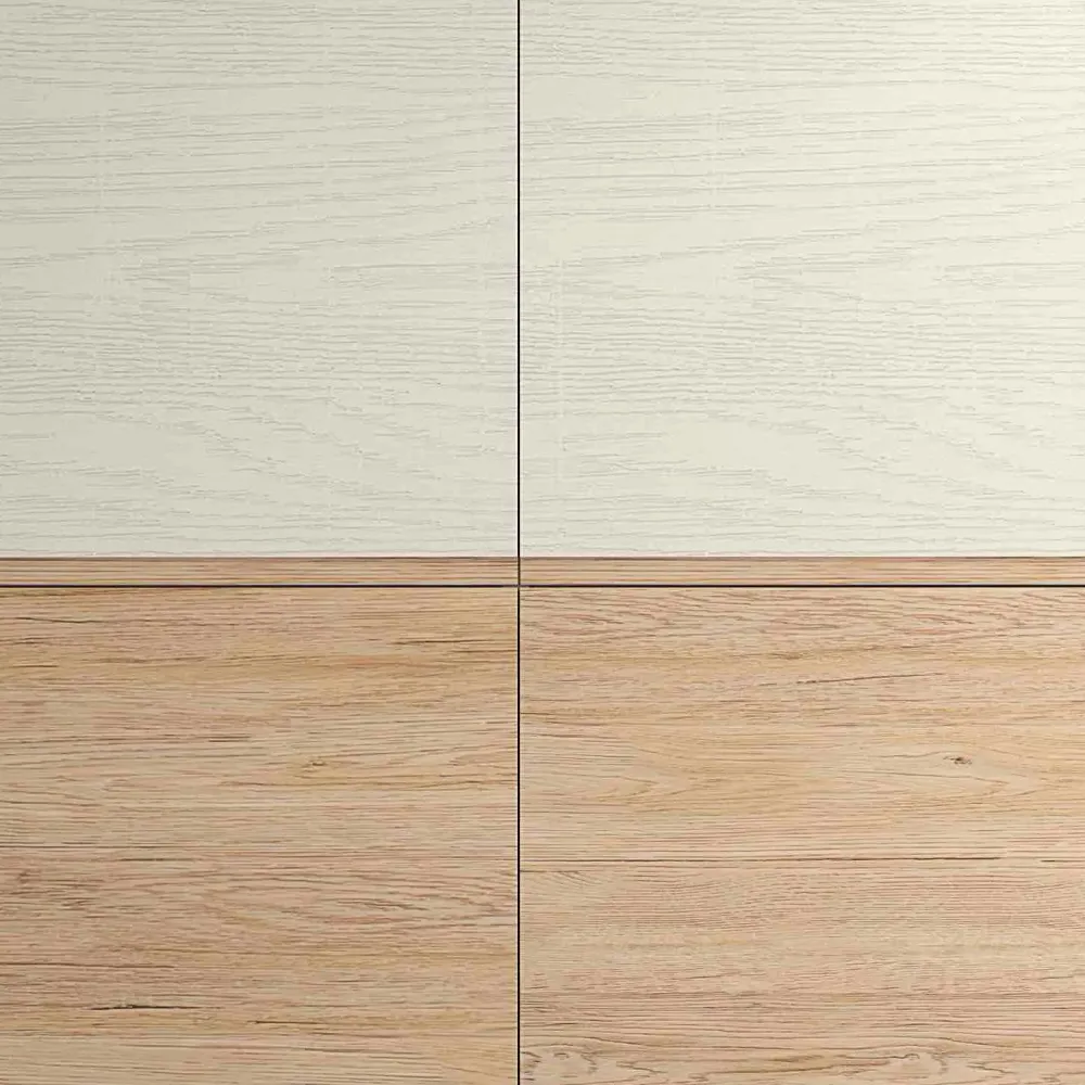 IN FOTO VIENE PROPOSTA CON LAMINATO MATERICO DI FRASSINO GESSO E LAMINATO MATERICO EFFETTO QUERCIA , MA LA PUOI VARIARE ALTERNANDO FRASSINO E QUERCIA TRA PORTE E CASSETTI