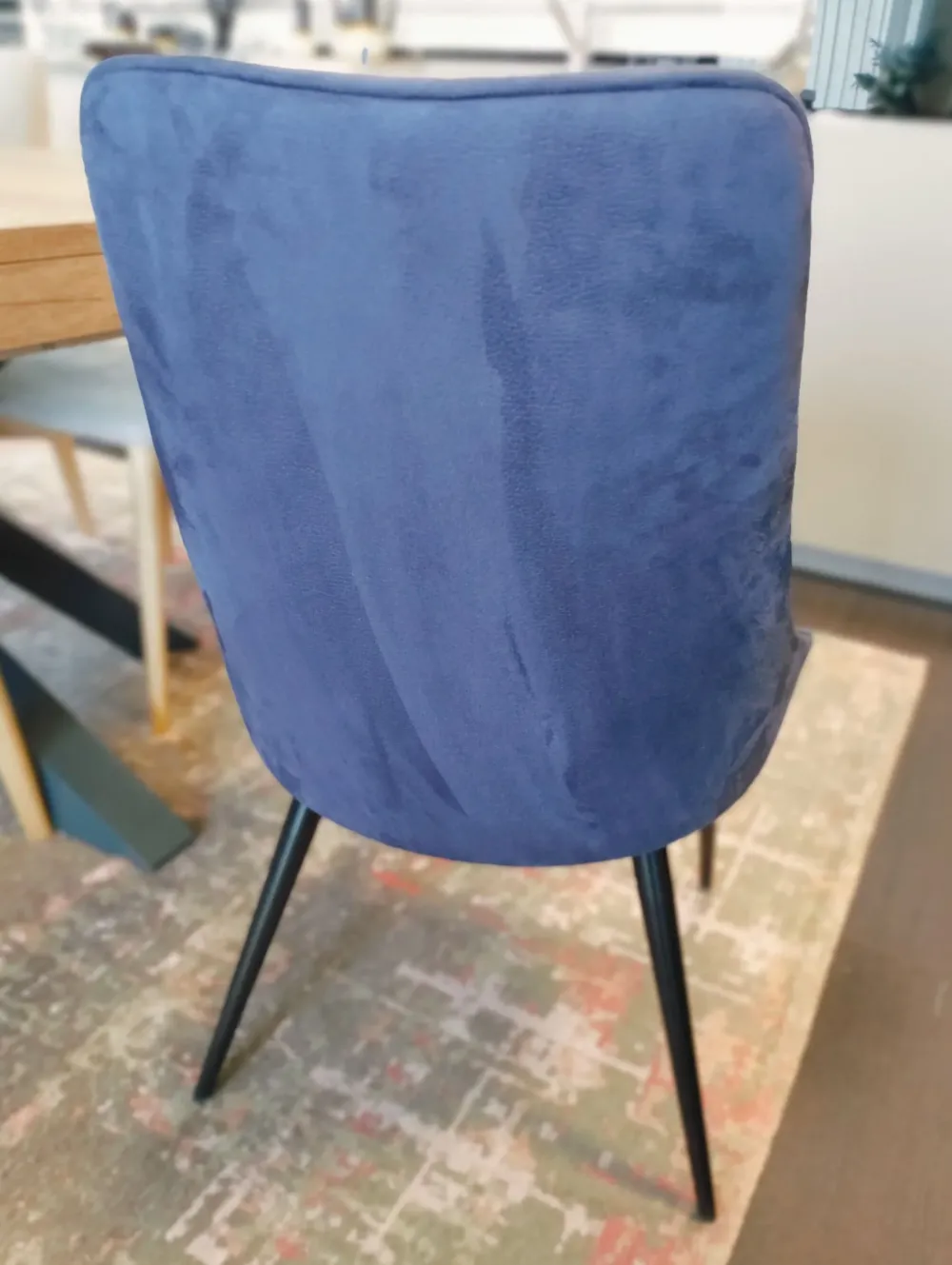 SEDIA DA SALA DA PRANZO IMBOTTITA IN PELLE NABUK BLU’.