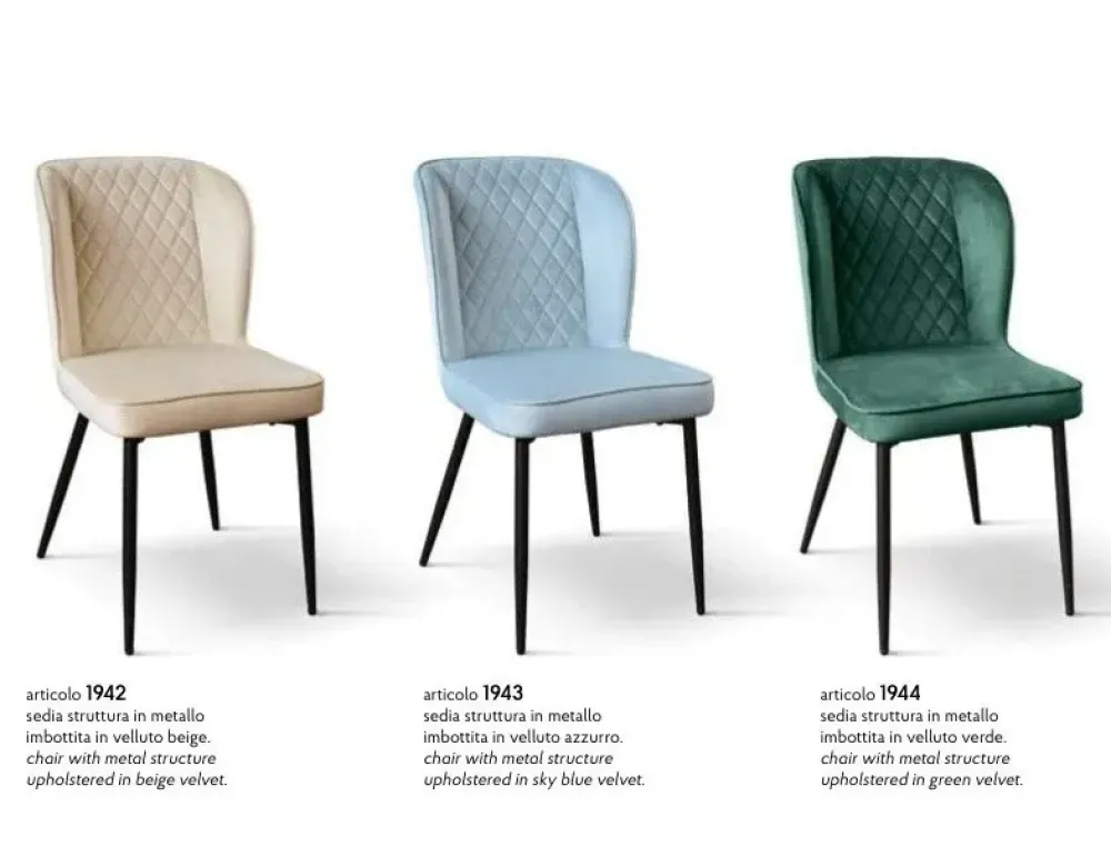 Arredo design srls, proponiamo in offerta outlet le sedie Lara con struttura in metallo verniciato nero e con rivestimento in velluto disponibile in 5 finiture.
