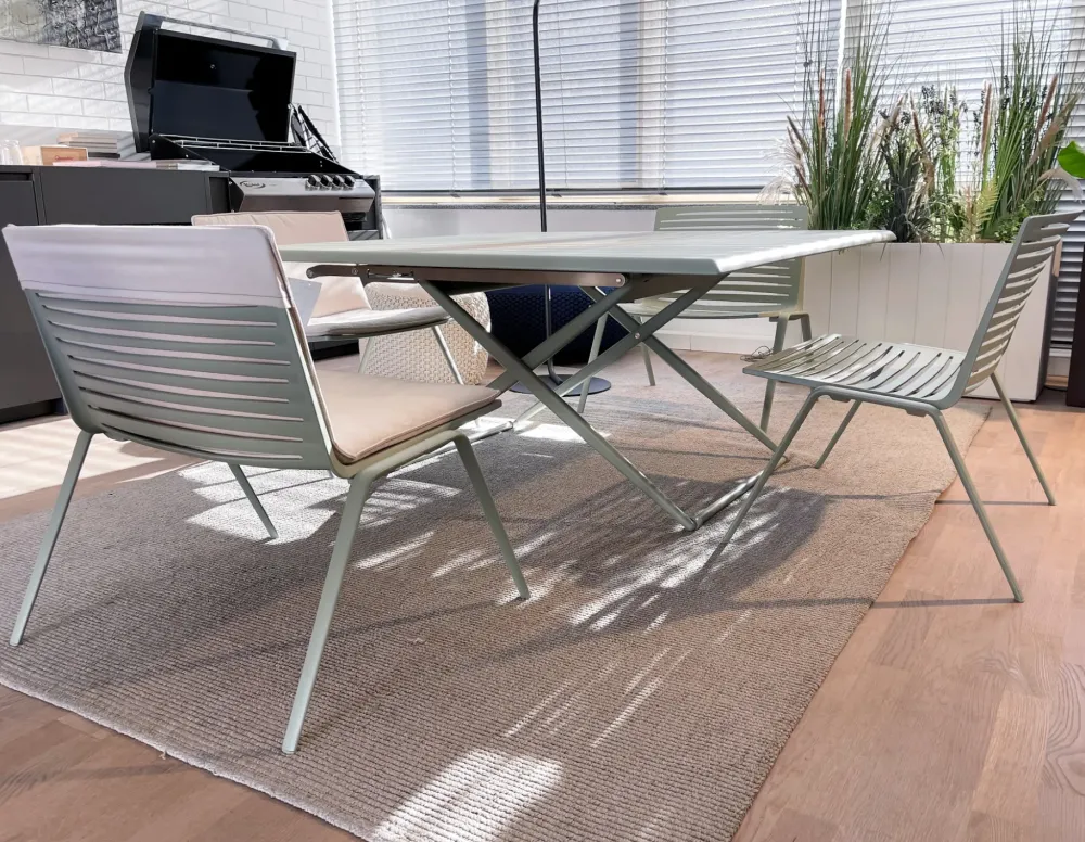 - Struttura in alluminio pressofuso, estruso e laminato, verniciata a polvere nel raffinato colore Tè verde.