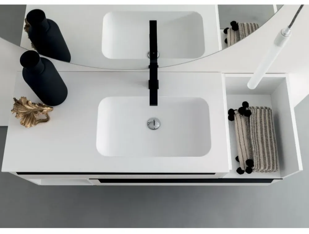 - Caratteristiche: Larghezza da 130 a 149 cm, Stile design, Materiale laminato, Profondità da 41 a 50 cm, Tipologia sospeso, Lavabo con lavabo integrato