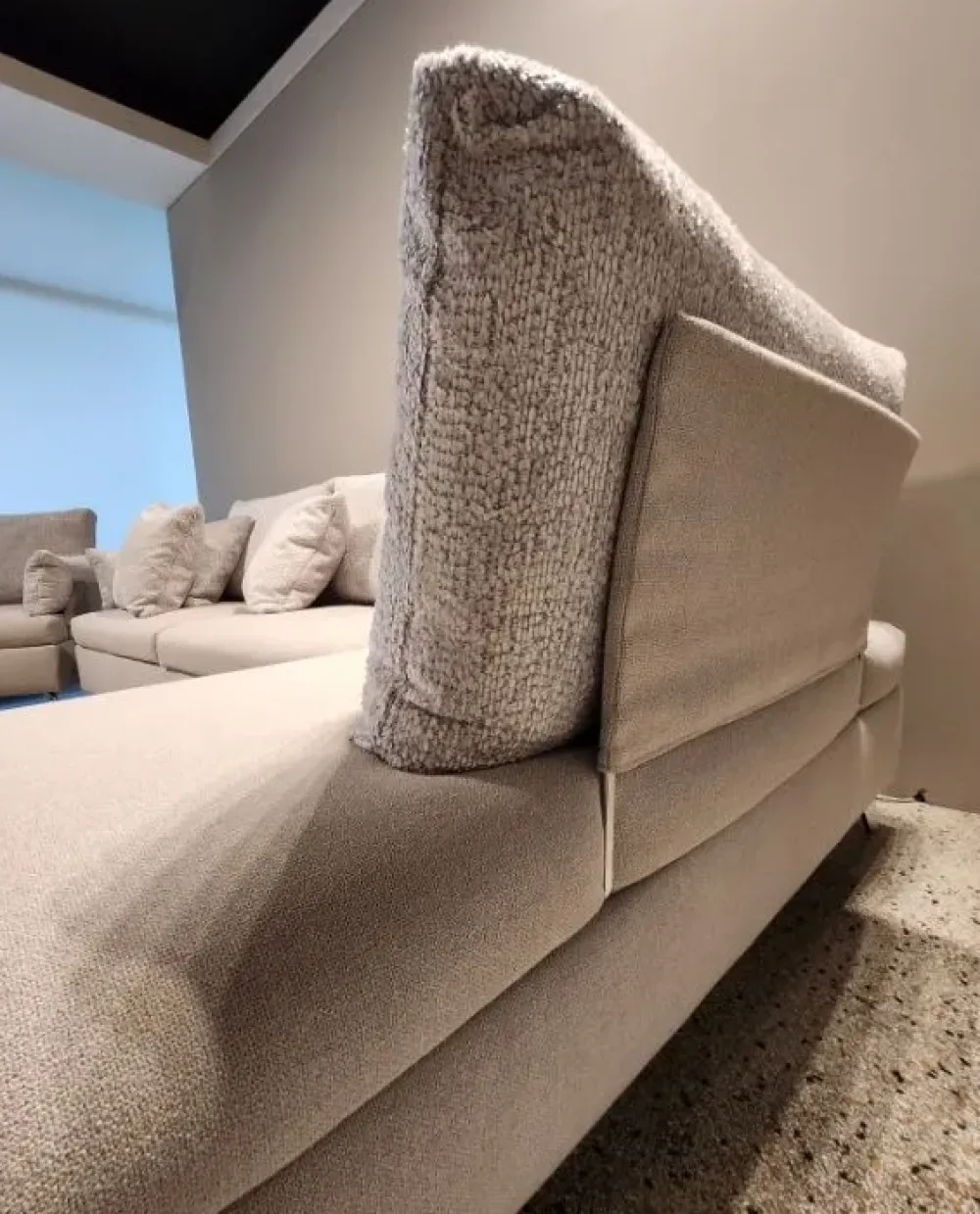 TUTTI I CUSCINI DI SEDUTA SONO IN POLIURETANO ESPANSO AD ALTA GRADAZIONE INDEFORMABILE, CUSCINI DI SCHIENALE SONO IN PIUMALATEX EFFETTO PIUMA D OCA NEL RISPETTO DELL AMBIENTE, TUTTI I POGGIA SCHIENA E BRACCIOLI SONO AGGANCIATI E REMOVIBILI PER IL POSIZIONAMENTO ANCHE IN ALTRI LATI DEL DIVANO.