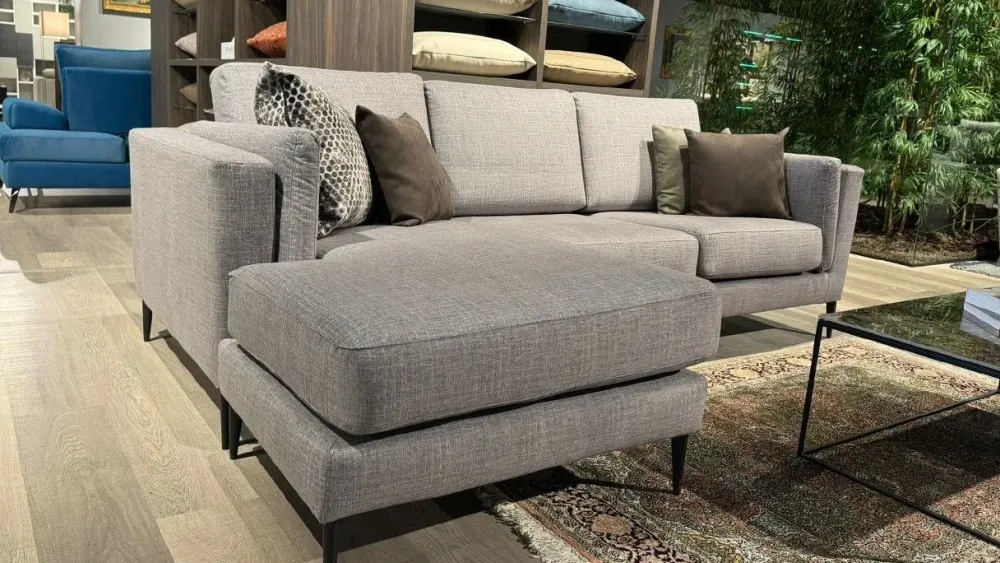 Le proposte di imbottiti che rivendiamo sono di ottima qualità non solo per quanto concerne l’aspetto estetico, ma anche per ergonomia e sicurezza; un prodotto La casa moderna, come questo modello in tessuto, è sempre rivestito con materiali di prima scelta che si prestano a ultimare esteticamente locali di ogni tipo garantendoti, contemporaneamente, resistenza negli anni ed estrema morbidezza. In un soggiorno che si rispetti sicuramente non può mancare una seduta confortevole e avvolgente per tutta la famiglia o per ogni possibile ospite: per tale ragione è veramente imprescindibile valutare anche il numero di posti a sedere degli imbottiti prima di comprare ciò che fa al caso tuo; questo modello, che possiede 3 posti, sicuramente sarà in grado di agevolare ogni tua esigenza. Materiali pregiati e design unico connotano questo modello di imbottito, ricercato e di gran classe: si rivelerà soluzione ideale per ultimare esteticamente il tuo soggiorno in stile moderno. Le misure dell’arredo che desideri disporre nella tua casa sono veramente importanti da valutare, proprio perchè non devono mai essere ingombranti: questo modello Miriam di La casa moderna è idoneo ad essere collocato in locali di differenti misure, per organizzare al meglio il living in una varietà di possibilità estetiche, poiché appartiene alla linea di imbottiti di lunghezza che varia da 226 a 250 cm. Valorizzare il tuo soggiorno in modo che sia totalmente funzionale sarà facile grazie ad uno dei modelli di con penisola come questo: se desideri sentirti comodo tutti i giorni in uno spazio prettamente dedicato al relax, prediligi il modello Miriam qui disponibile, ideale per accoglierti e coccolarti con la sua soffice imbottitura. Splendido imbottito La casa moderna tra le nostre vantaggiose Offerte Outlet: trasporto escluso per questa proposta.