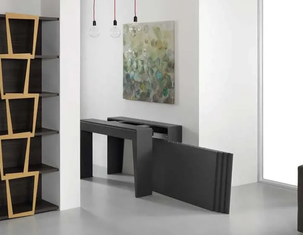 - È molto importante valutare anche le finiture con cui i complementi sono stati costruiti prima di sceglierne e acquistarne uno, valutando una scelta praticamente infinita di finiture disponibili in commercio; per il modello di Consolle allungabile in melaminico qui visibile il marchio ha selezionato un materiale gradevole e resistente, appropriato per valorizzare le stanze assicurandoti anche di resistere in anni al prolungato utilizzo.