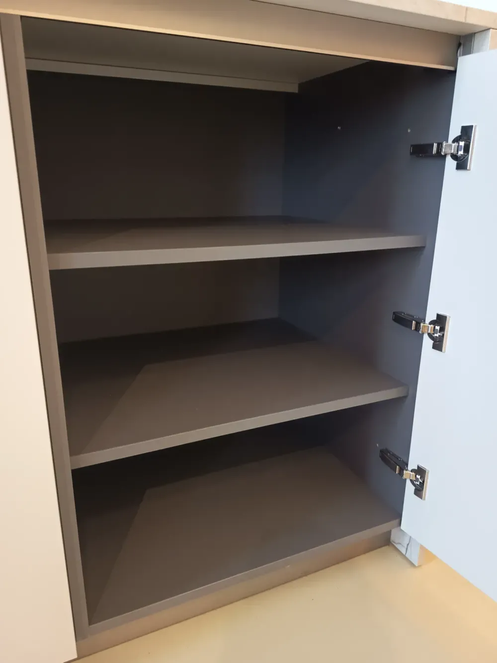 Nell’ambiente cucina la scelta delle cromie è utile per connotare lo stile e a proporre atmosfere curate anche in un locale destinato all’operatività. Potete anche scegliere due colori o finiture differenti per pensili e basi. Kali tortora è a disposizione in Offerta Outlet.