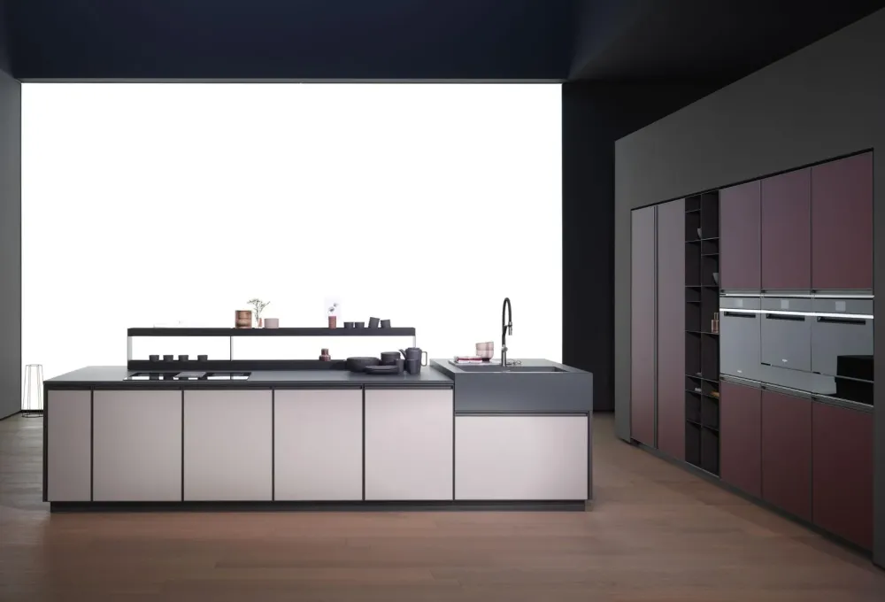CUCINA KRONOS ARREDO 3 ANTA PROFILATA ALLUMINIO CON MANIGLIA INTEGRATA FRONTALI VETRO OPACO TOP HPL FORNO A VAPORE -MULTIFUNZIONE-SCALDAVIVANDE PARETE COLONNE CM 360 ISOLA 300X90 TRASPORTO INCLUSO FINO A 50KM