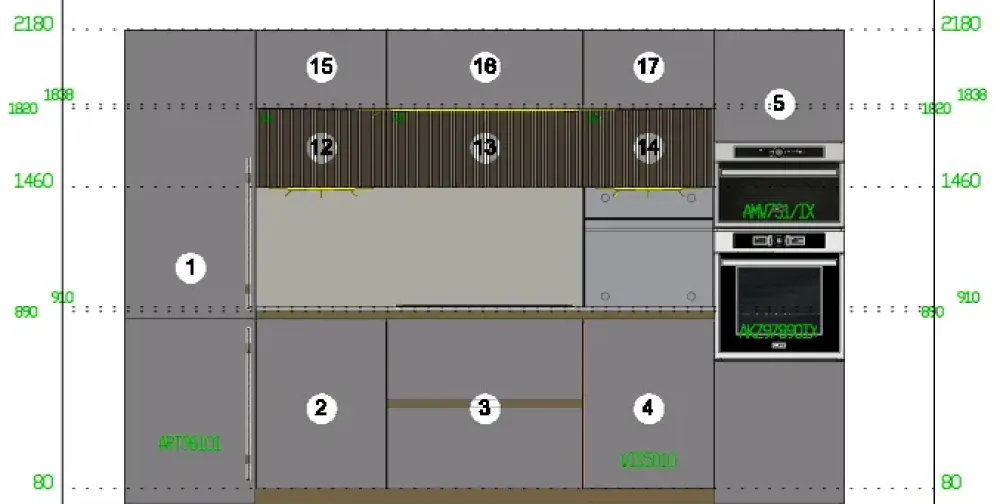 - Tutti i cibi, tra cui anche gli ortaggi e la frutta fresca, devono essere conservati alla perfezione, per cui questa cucina include un frigorifero ad Incasso veramente spazioso e funzionale