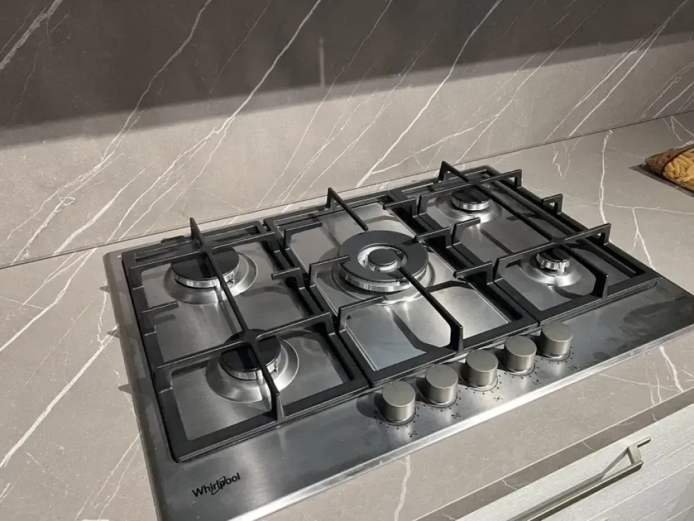 - Distribuzione uniforme del fuoco sotto le pentole e cottura ottimale sono i connotati principali del piano cottura a gas che proponiamo per questa cucina Stosa, pensato per facilitare le consuete pratiche che svolgiamo in cucina.