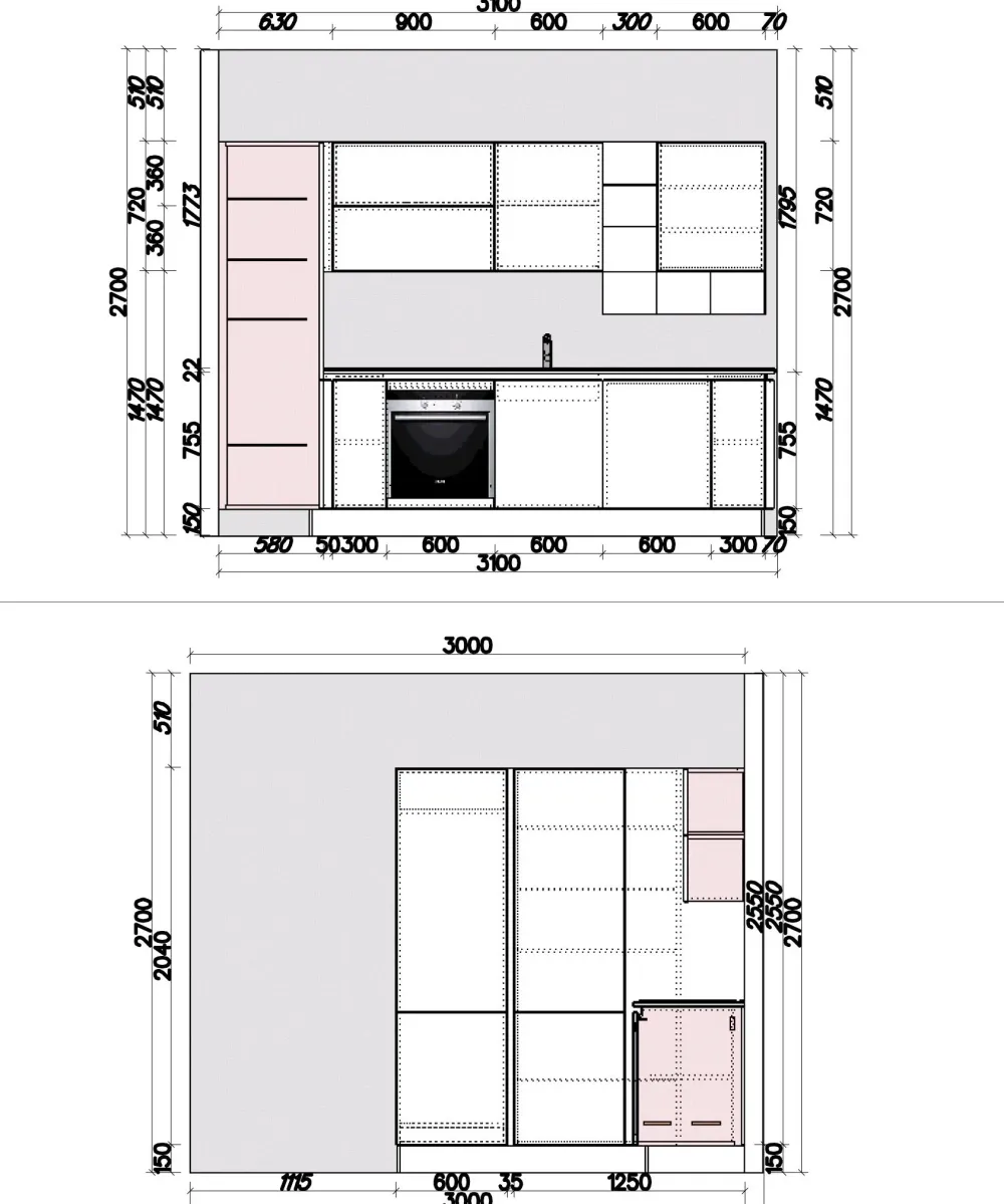 - Allo scopo di cuocere le pietanze correttamente, è indispensabile la presenza di un forno multifunzione, inserito in questa cucina Filoescape.
