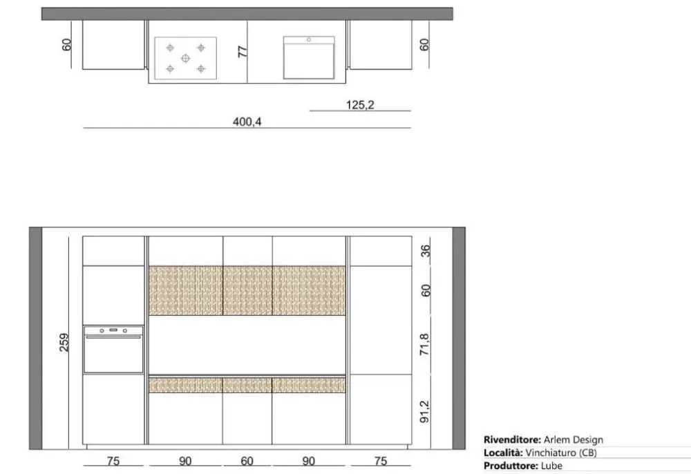 È d’obbligo considerare pure la spedizione con le sue relative spese trasporto escluso per questa cucina Lube Cucine scontata.