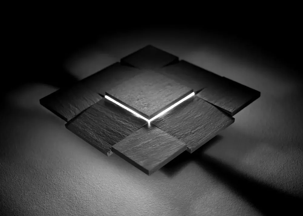 Piccola Sissi di Ca’Belli è una lampada da parete unica ed inimitabile. Realizzata con pietra ardesia con vari dislivelli da dove penetra la luce, per dare un effetto luminoso straordinario. Un’applique che oltre ad illuminare è un vero e proprio complemento di arredo.
