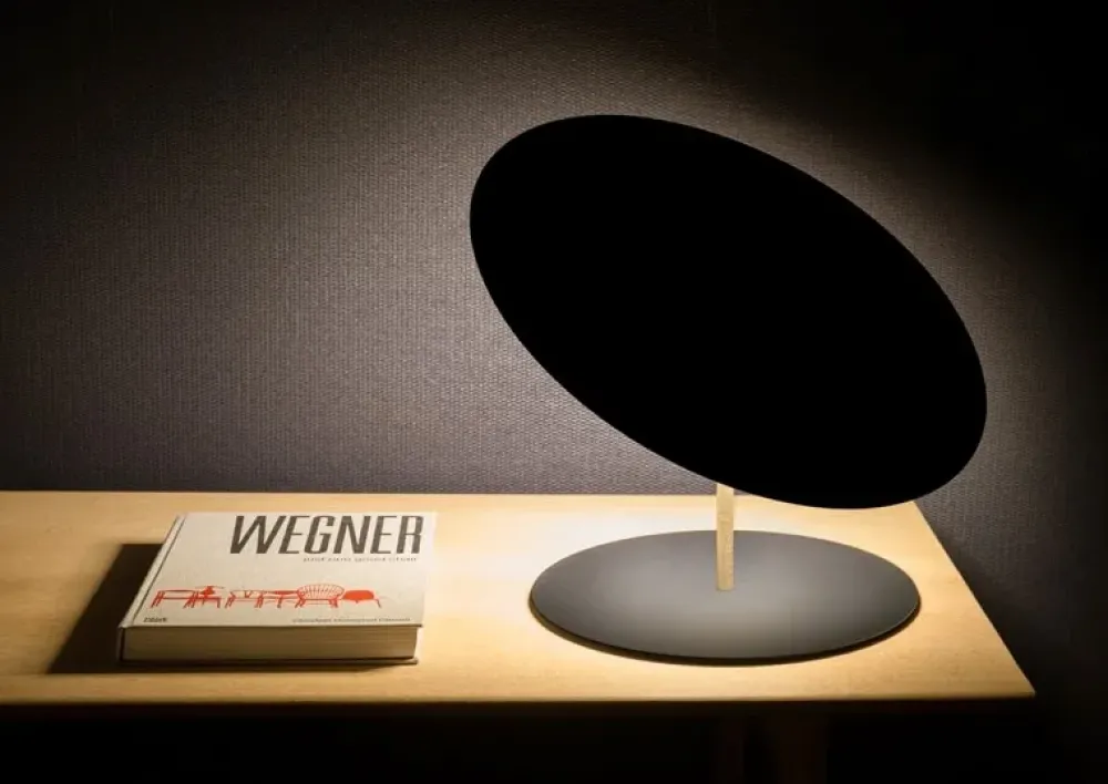 Un lavoro sui piani e sulla bidimensionalità. La sottigliezza e la leggerezza sono le componenti fondamentali di progetto di questa lampada. Uno specchio circolare può essere orientato a piacimento per illuminare e nello stesso tempo cogliere lo spazio circostante. Stelo in ottone, riflettore in inox a specchio, cavo e base nera orientabile. LED incluso.