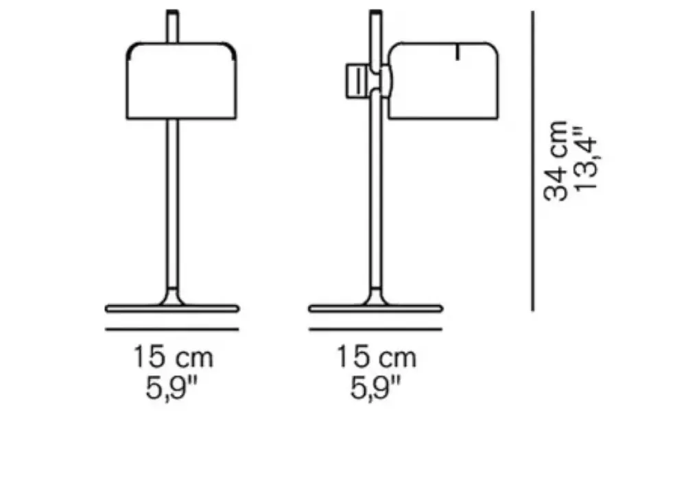 Lampada da tavolo con speciale riflettore semicilindrico in metallo verniciato a fuoco. Coupé ha ottenuto, nel 1968, lo International Design Award dell American Institute of Interior Designers, a Chicago. Fa parte della collezione permanente del MoMA di New York e del Neue Sammlung Museum di Monaco di Baviera.