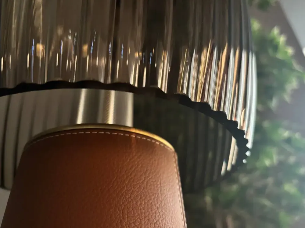 Paralume in vetro soffiato con lavorazione cannettata col. fumè.