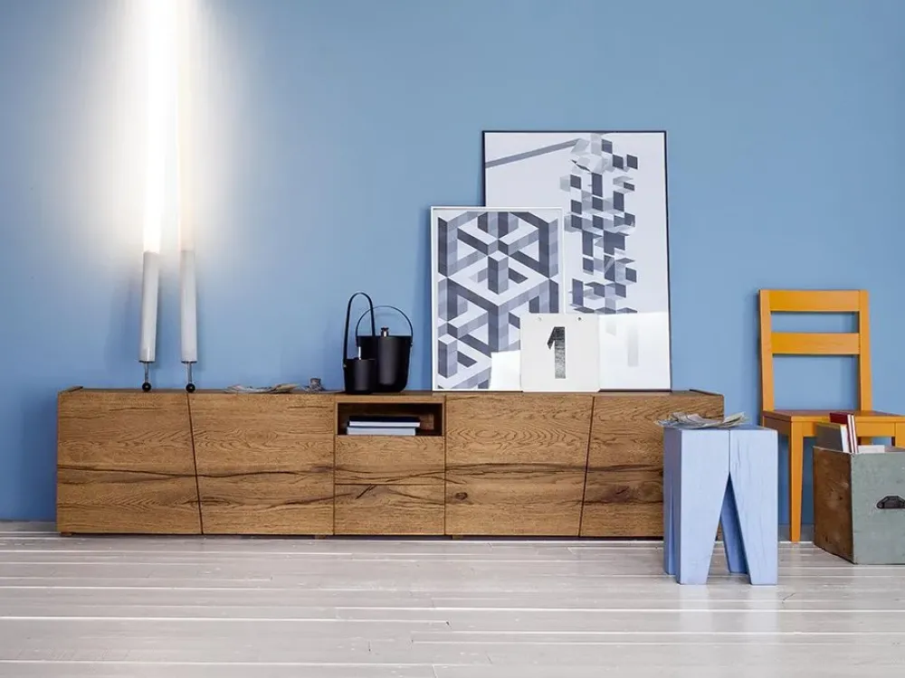 La credenza Unika di Devina Nais, design, in rovere massello materico e con le ante in diagonale la rende uno stile tutto suo. Unika disponibile nella versione a 4 ante in tre misure oppure una misuraca 2 ante; mentre sono disponibile 2 tipi piedi in vetro o in ferro. Infine la versione bassa Unika B oltre le ante è fornita di un vano a giorno e 2 cassetti, ottima come credenza moderna porta televisione
