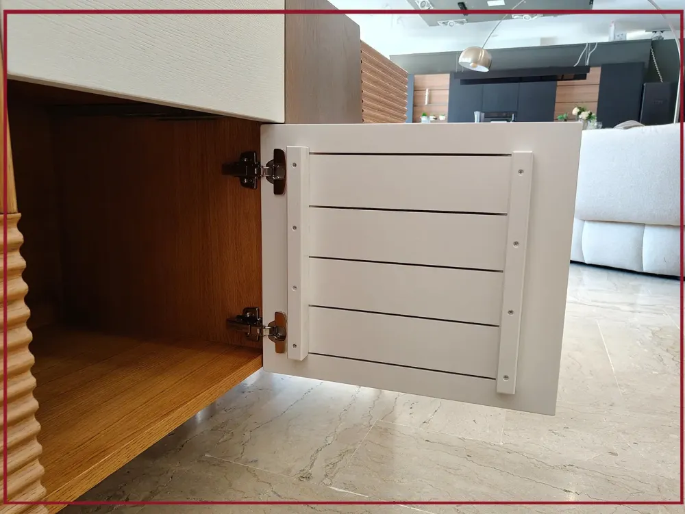Le venature naturali si intrecciano con forme dinamiche, mentre l alternanza di ante e cassetti si fonde in un equilibrio perfetto tra estetica e funzionalità.