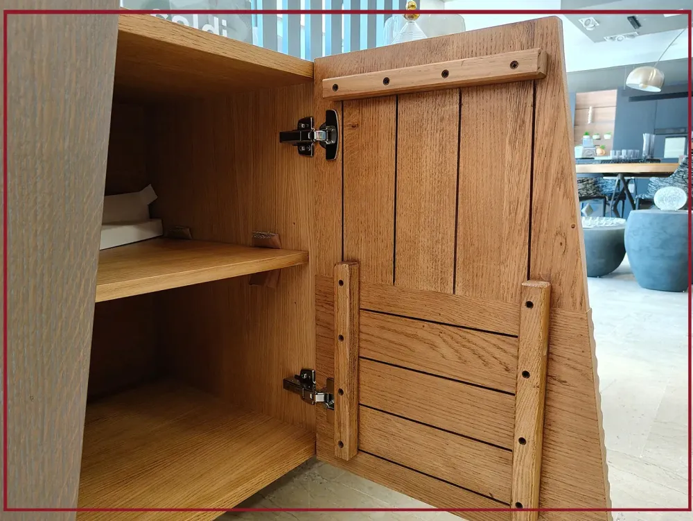 Ogni dettaglio è pensato per esaltare la bellezza autentica del legno massello, protagonista indiscusso di questa composizione.