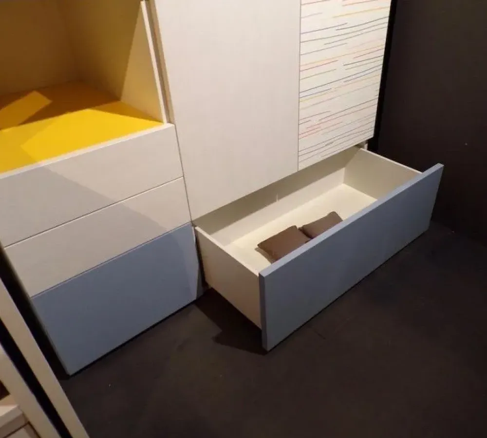 - L’ambiente dei piccoli deve essere ammobiliato in modo da garantire una serena vita di tutti i giorni ai più piccoli, in uno spazio molto ampio che regali loro la completa libertà di divertirsi e dormire sempre secondo le loro passioni: il marchio propone una scelta praticamente infinita di tipologie di camerette per le più diverse esigenze, da quelle a terra a quelle estremamente compatte, da quelle per neonati a quelle per ragazzi; il modello Vipqui visibile fa parte della serie di camerette con letti a ponte.