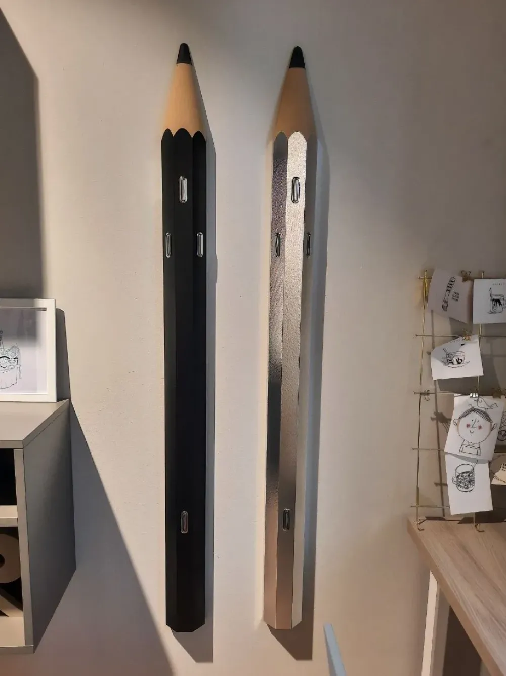 Matità è un attaccapanni a forma di matita, un appendiabiti da parete originale ed ironico.