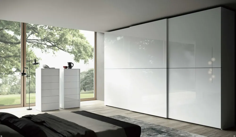 Armadio 3 ante scorrevoli mod. Forte 2; l eccezionale spessore dell anta e l inserto in finitura Piombo, che divide la linearità della superficie laccata lucida, ne valorizzano il disegno. Fianchi e ante in finitura Laccato Lucido Neve, inserto in finitura Piombo. Interni in finitura Canvas. All interno, massima progettualità per un sistema di attrezzature flessibili, capaci di organizzare gli spazi con ripiani spostabili, accessori estraibili e cassettiere. trasporto e installazione .480 fino a 75 km DIMENSIONE 362,8P62,6/67,7 H259,2.NB:MERCE SU ORDINAZIONE CON IL 35% SCONTO,POSSIBILITA DI MODIFICA COMPOSIZIONE COLORE