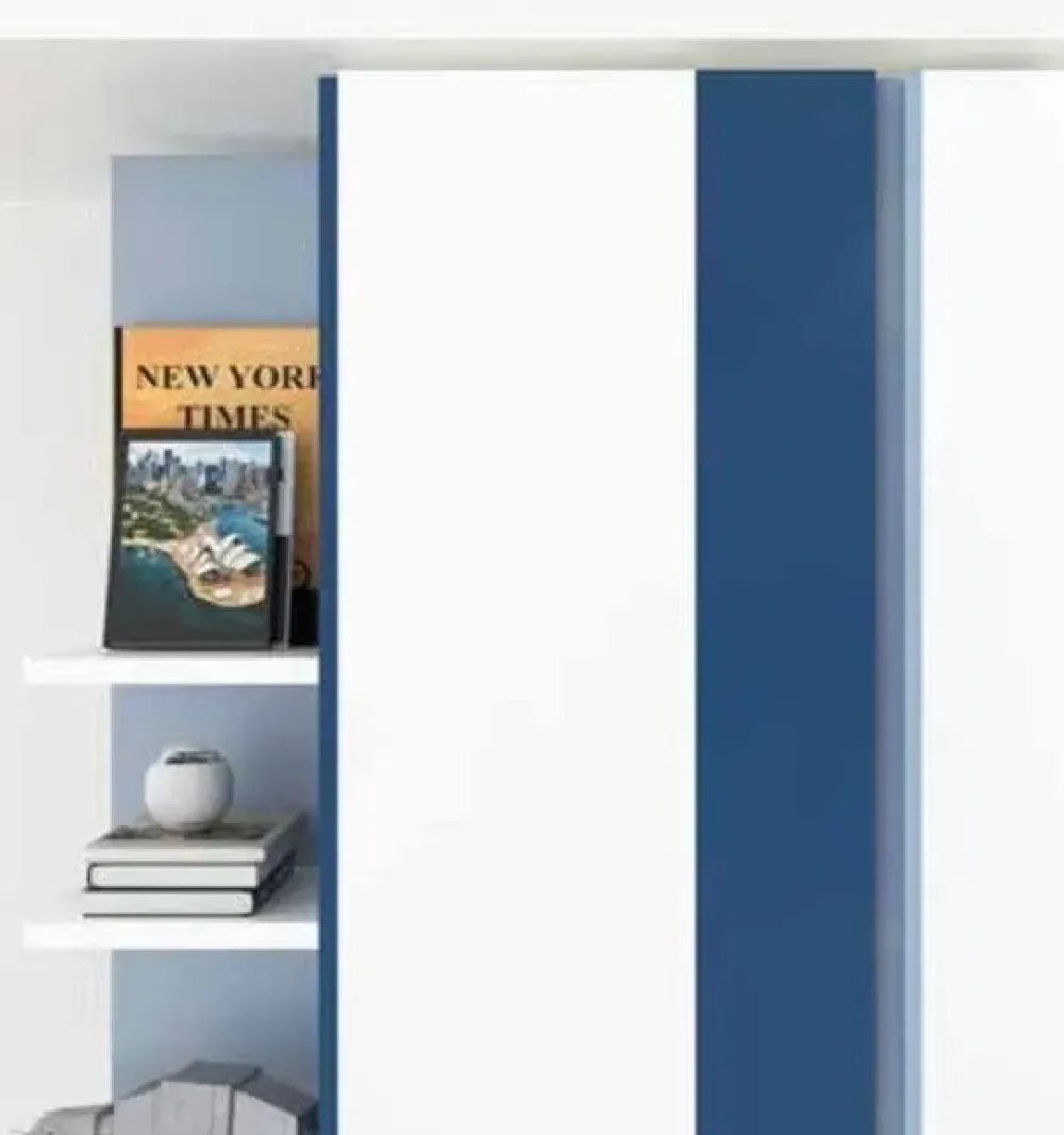 Sono molteplici le soluzioni componibili di ” LINEA IN ARREDAMENTI ” per arredare la cameretta e creare un ambiente accogliente e armonioso, con gli spazi ben organizzati. Particolare importante il letto inferiore con la rete contenitore dove ogni cosa trova il suo posto . Il modulo con il letto sovrapposto risolve il problema di spazio, ma allo stesso tempo viene garantita la massima sicurezza e confort. Anche l’armadio capiente con i suoi colori vari completano tutto l’arredo. E’ possibile acquistare separatamente i vari pezzi della composizione secondo le varie esigenze. E’ possibile completare/richiedere: – armadi con apertura ante battente/libro/scorrevole – librerie – specchiere – servetto saliscendi porta abiti – cesti estraibili – specchi interni E’ possibile modificare: – misure e componibilità della composizione – finiture con colori diversi – realizzazione anche “su misura” per armadi, librerie, mensole, pannellature Scheda informativa del prodotto di Qualita1 MADE IN ITALY – strutture in laminato materico Classe E 1, sp.mm 18, – ante/cassetti in laminato materico Classe E 1, sp. mm 22, bordo ABS 4 lati, – ripiani interni spostabili – apertura ante a gola(senza maniglia) – finiture: Bianco, azzurro, blu, avio. LA COMPOSIZIONE COME FOTO COMPRENDE: Armadio a 6 ante battenti + terminale a giorno, completo di: – 6 ripiani interni – 6 tubi inox appendiabiti – misure armadio: L. cm 270 x P. 58 x H. 225 – misure terminale a giorno: L. 30 x P. 58 x H. 225 Modulo con letto sovrapposto composto da: Pannellatura colori vari Letto inferiore con giro letto imbottito e rivestito in eco pelle colore avio completo di: – rete contenitore con struttura in metallo verniciato a fuoco, pianale con doghe in legno – misure: L. cm 80 x P. 190 – materasso escluso Cassettone con vano a giorno L. cm 90 x P. 58 x H. 48 Letto sovrapposto con protezione reclinabile – misure: L. cm 90 x P. 206 – materasso escluso Scaletta con vani contenitori L. cm 45 x P. 88 Scrittoio pieghevole con pannello forato – misure: L. cm 90 Mensole in metallo laccato