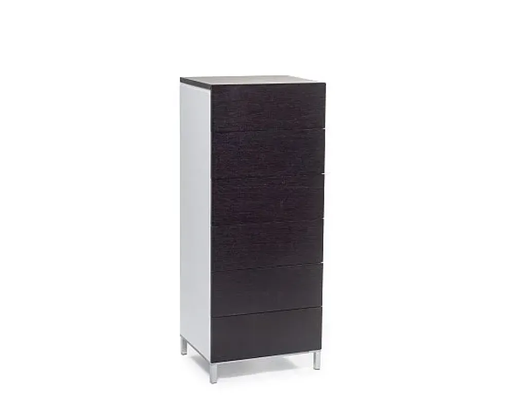 Ideale per camere da letto, soggiorni o disimpegni. Pratica e funzionale, esteticamente apprezzabile per il raffinato contrasto tra la venatura dei frontali cassetto e del top in essenza wengè ed i fianchi laccato bianco.