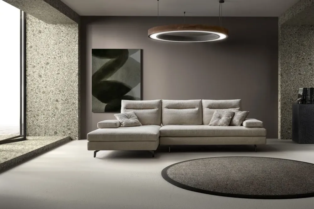 - L’imbottito Loft qui visibile, ovvero uno dei modelli che rientrano nella linea di imbottiti di lunghezza che va da 326 a 350 cm, è ideale per ambienti di svariate dimensioni; i mobili devono valorizzare gli spazi indoor esaltando anche le doti pratiche degli stessi: quindi è fondamentale selezionarli anche a seconda delle loro dimensioni ed alla disposizione degli ambienti in cui saranno collocati.