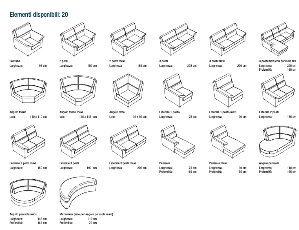 - Tipologia divani con seduta fissa che offre una seduta confortevole.