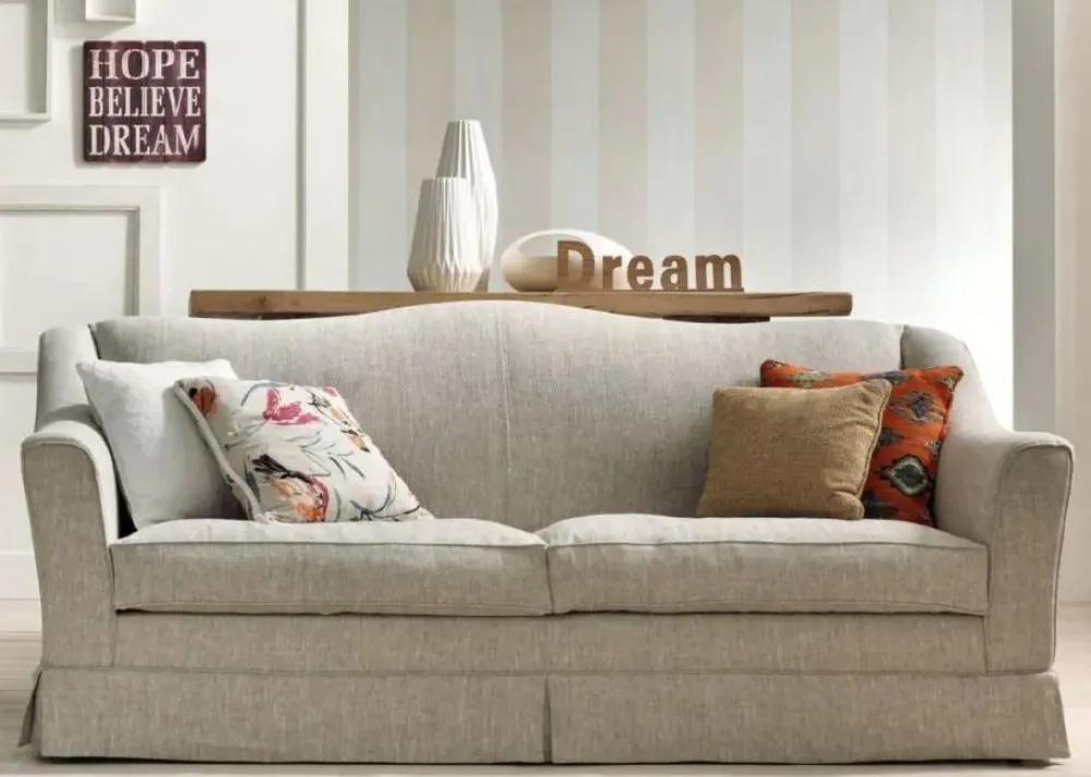 - In un soggiorno di tutto rispetto, anche gli imbottiti devono seguire una peculiare uniformità cromatica e di stile: il modello qui visibile è l’ideale per completare perfettamente un interno in stile classico; linee ben studiate e materiali di prima scelta che resistano nel tempo lo rendono una soluzione arredativa dall’estetica raffinata.
