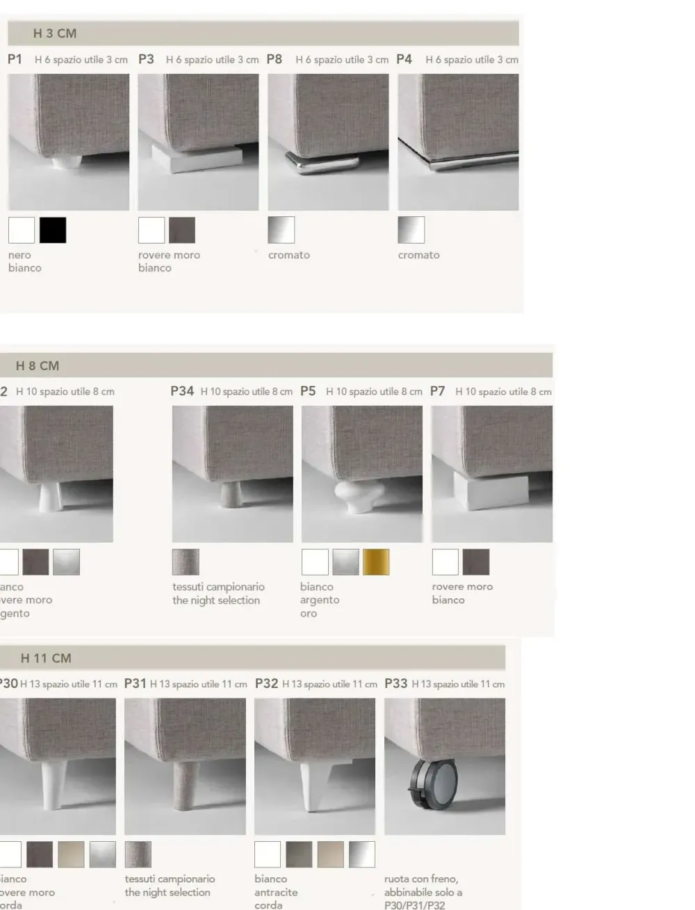 - Piedi a cipolla P1, finiture bianco o nero