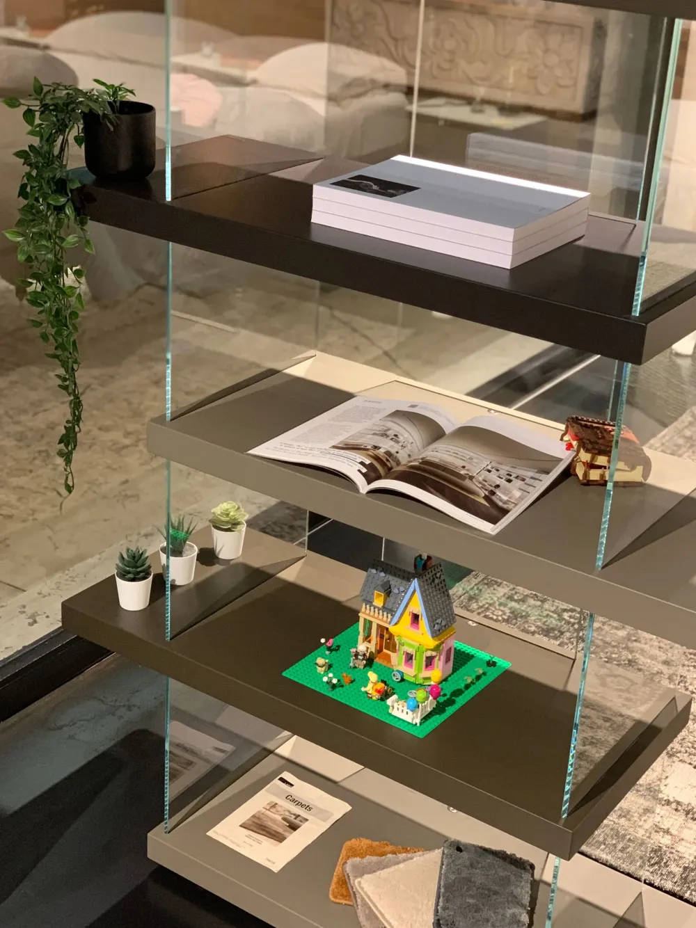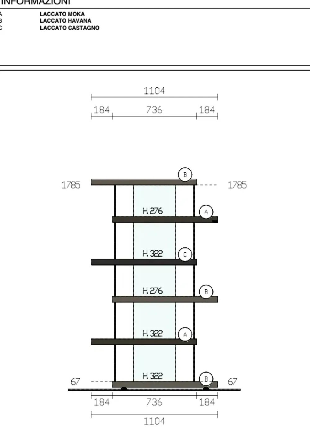 LIBRERIA A TERRA MODELLO AIR DI LAGO IN OFFERTA OUTLET AZIENDA: Lago MODELLO: Air – versione 1462 FINITURA: Laccato opaco e vetro temperato trasparente. Composizione dal basso: 1 Mensola Laccato opaco Havana cm 92×40,6 spessore 5 cm 1 Mensola Laccato opaco Moka cm 92×40,6 spessore 5 cm 1 Mensola Laccato opaco Havana cm 92×40,6 spessore 5 cm 1 Mensola Laccato opaco Castagno cm 92×40,6 spessore 5 cm 1 Mensola Laccato opaco Moka cm 92×40,6 spessore 5 cm 1 Mensola Laccato opaco Havana cm 92×40,6 spessore 5 cm 2 Set Alzata da cm 27,6 vetro trasparente 3 Set Alzata da cm 32,2 vetro trasparente DIMENSIONI TOTALI: L 110,4 H 183,5 P 40,6