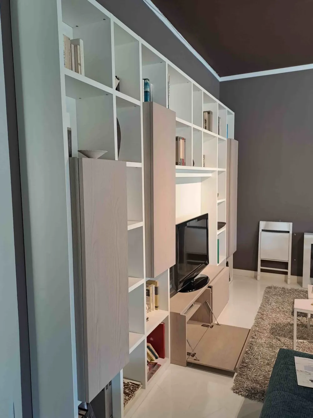 I mobili e oggetti accessori per la zona giorno danno la possibilità di customizzare lo spazio dando vita a peculiari atmosfere: se desideri un soggiorno moderne, la libreria nella fotografia fa per te