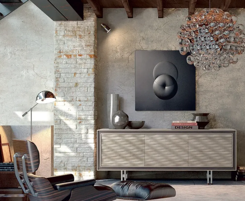 - Al fine di poter far fronte a molteplici esigenze abitative, il brand ha messo a punto una linea di arredi di diverse tipologie per il living; il modello presente in foto è un mobile a terra, multifunzionale e ampio.
