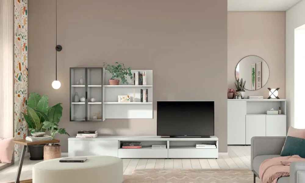 - Linee decise e un design unico contraddistinguono questa composizione per il living, rendendola ideale per arricchire uno spazio in stile moderni.