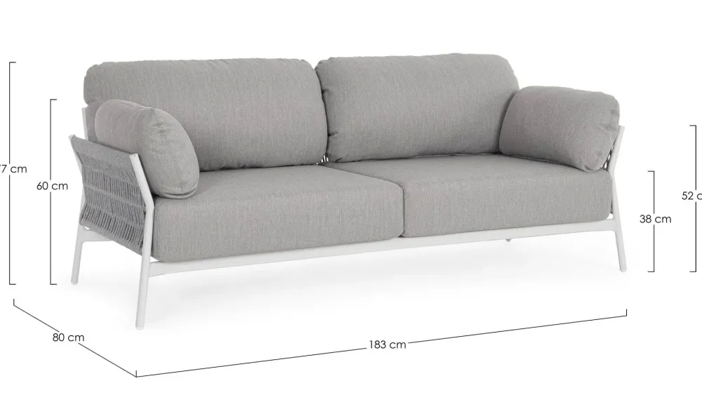 - Materiali di qualità: il divano è realizzato con materiali di prima qualità, resistenti agli agenti atmosferici, che garantiscono una lunga durata nel tempo.
