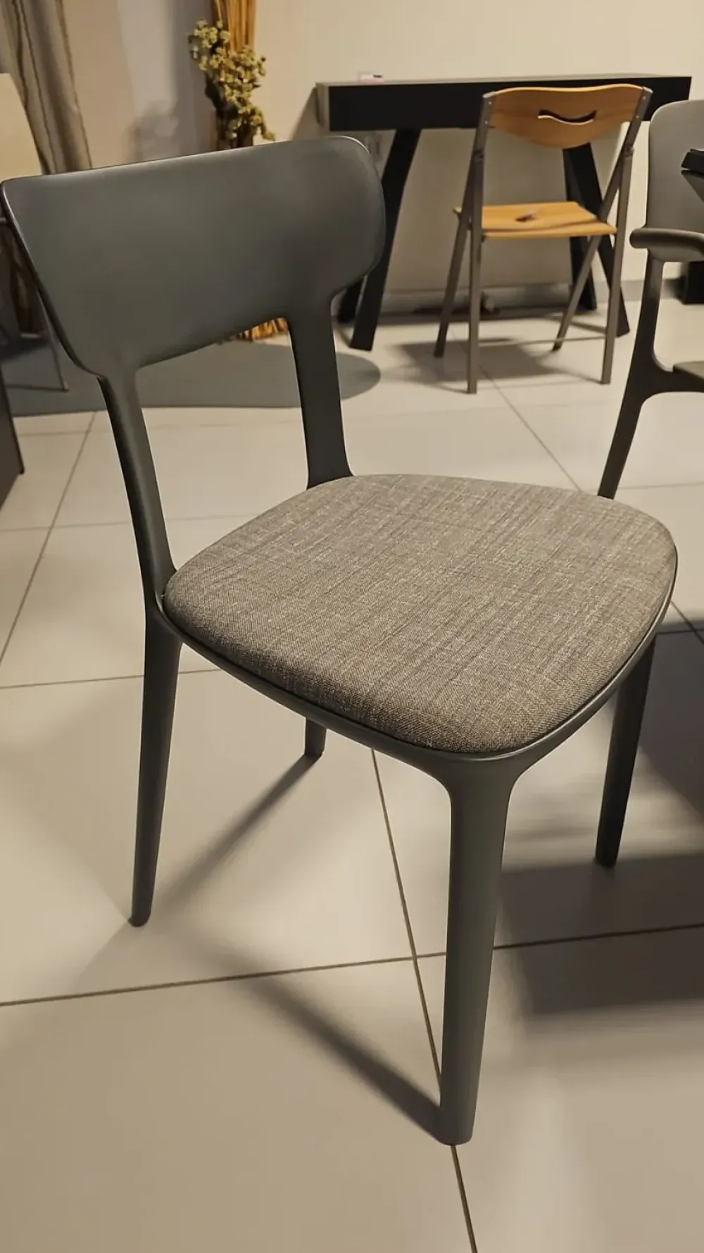 Sedia modello CANOVA, struttura in polipropilene antracite, sedile imbottito con rivestimento in tessuto idrorepellente e smacchiabile