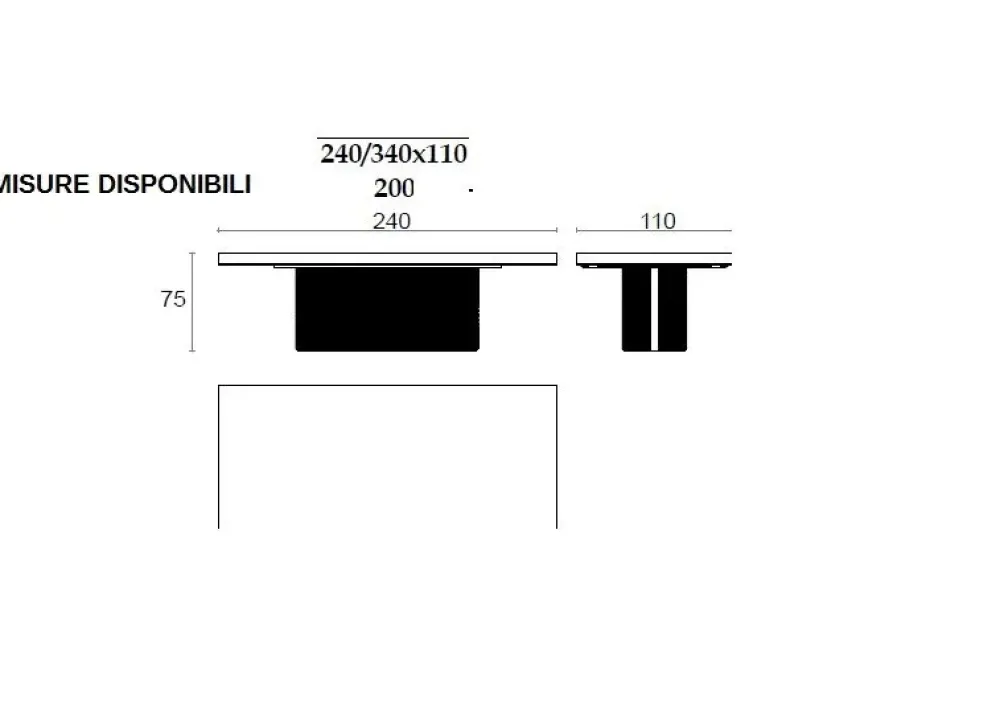DISPONIBILE ANCHE LA VERSIONE DA 240 CM O LA VERSIONE ALLUNGABILE CHE MISURA 240 X 110 CM ALLUNGABILE FINO A 340 CM