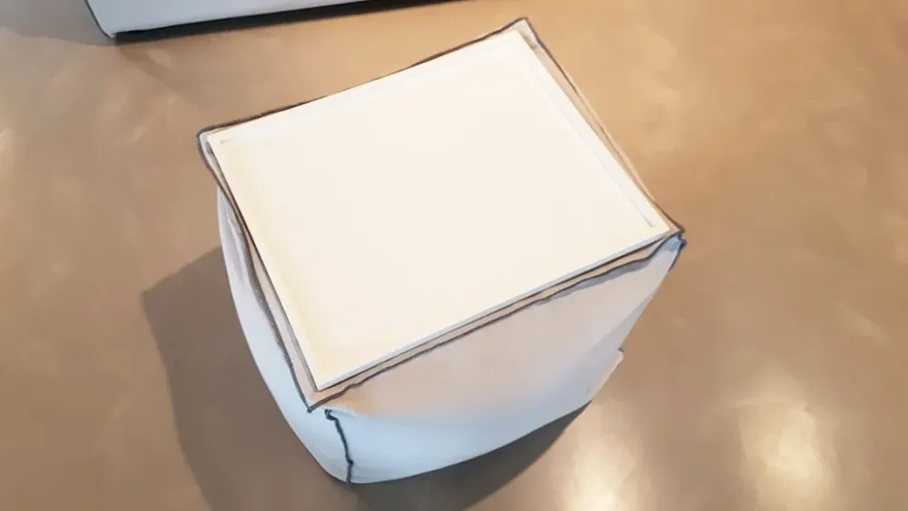 Il vassoio in offerta è abbinabile al pouf imbottito di Gervasoni.