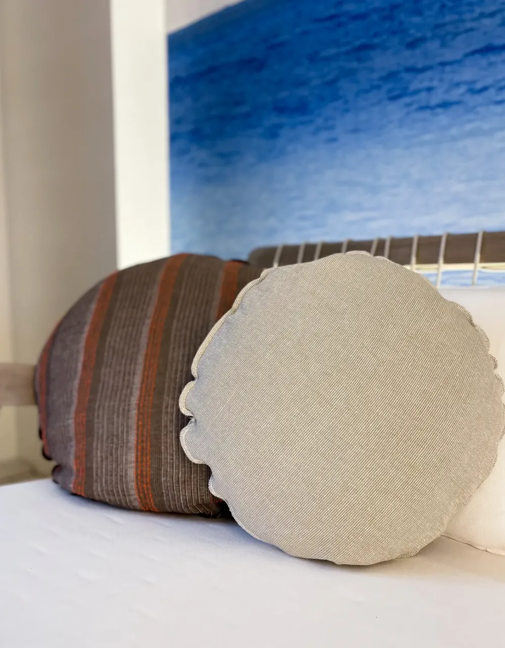 Con le sue dimensioni compatte (L 170 cm, P 88 cm, H seduta 39 cm, H totale 77 cm), si adatta facilmente a qualsiasi ambiente. I cuscini in polipropilene bianco sono sfoderabili e facili da pulire, garantendo il massimo comfort. Include anche due cuscini volanti, uno da Ø 45 cm e uno da Ø 60 cm.