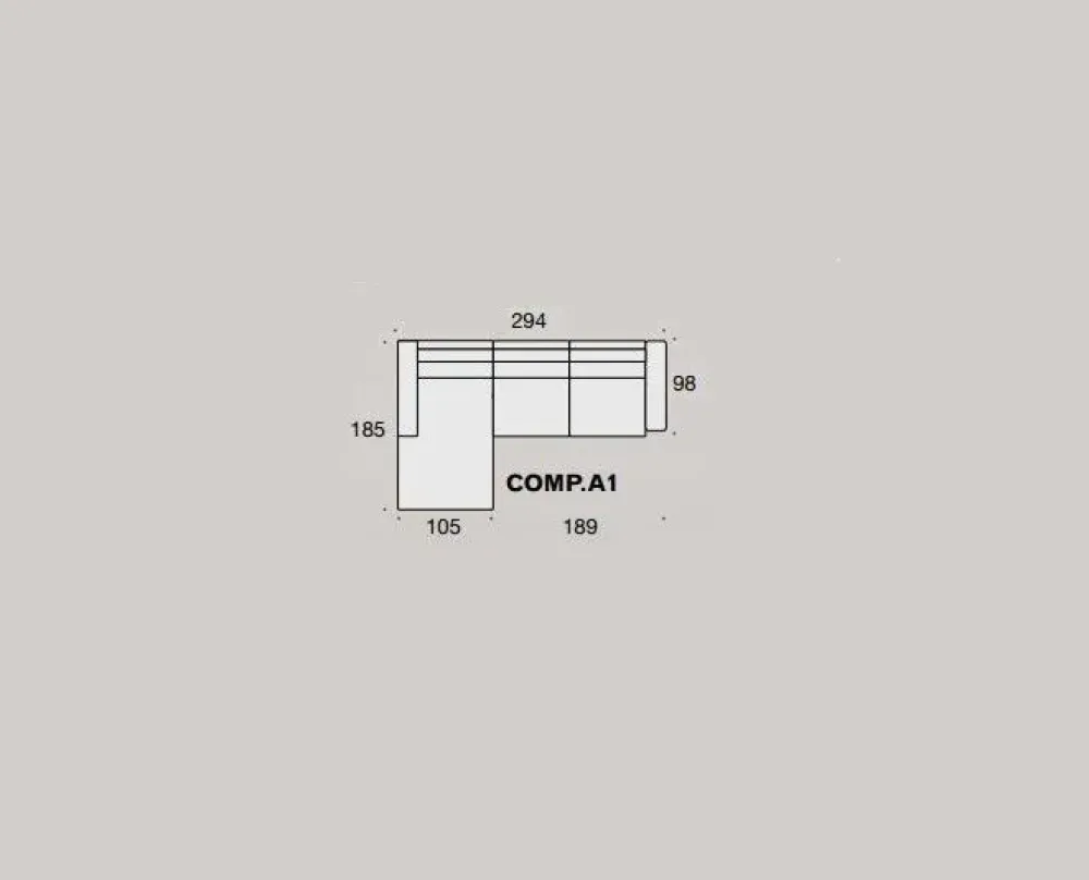 Dimensioni: 294×185 / 98xh80 cm Divano 3 posti laterale + penisola 185 cm