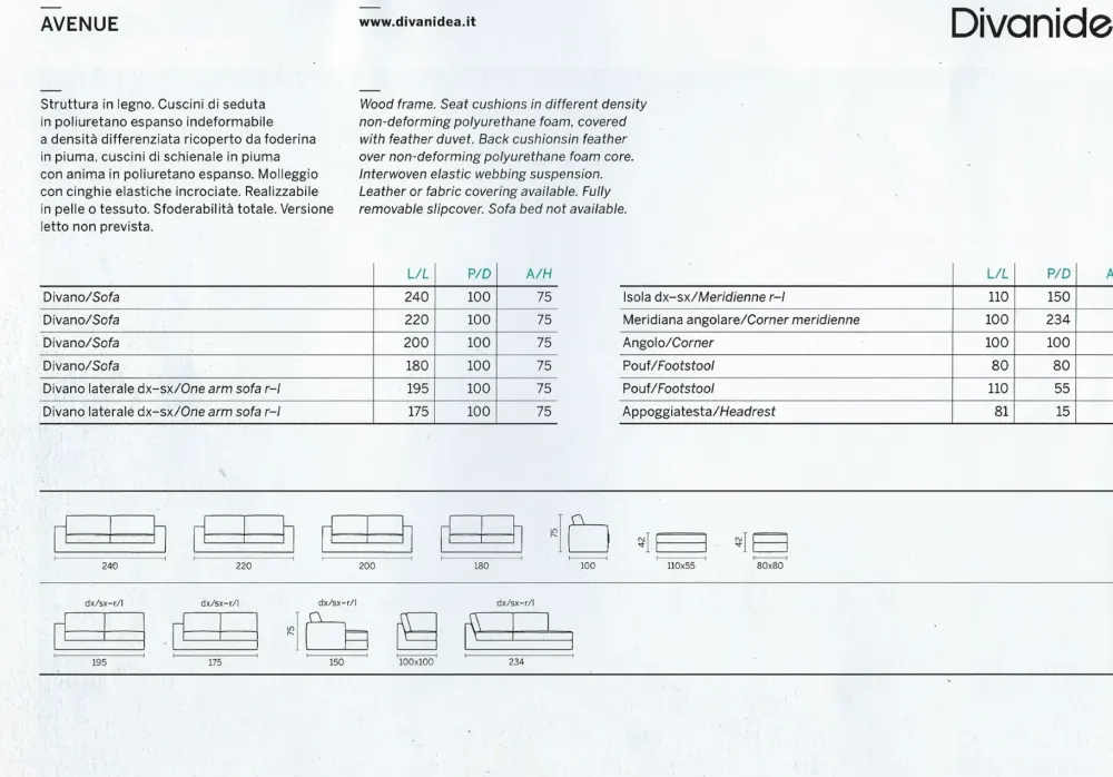 Proporzioni perfette per Avenue, il divano design con piedini bassi che arreda il soggiorno con le sue linee accoglienti ma al tempo stesso essenziali e con i suoi volumi importanti. La morbidezza è assicurata dalla piuma che ricopre la foderina dei cuscini di seduta e quelli di schienale e dal molleggio con cinghie elastiche incrociate. E’ l’ideale per trascorrere piacevoli momenti di relax. Realizzabile in pelle e tessuto è totalmente sfoderabile per una facile pulizia e manutenzione. Non disponibile la versione letto.