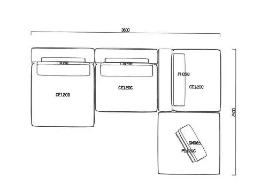 - Tipologia divani angolari, con seduta fissa e numero di posti grandi