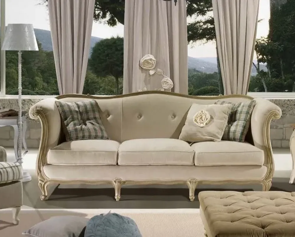 - In un living che si rispetti, anche gli imbottiti devono seguire una certa continuità di colore e di stile: il modello qui presente è l’ideale per ultimare al meglio uno spazio in stile provenzale; design unico e materiali pregiati resistenti nel tempo lo rendono una soluzione arredativa di gran classe.