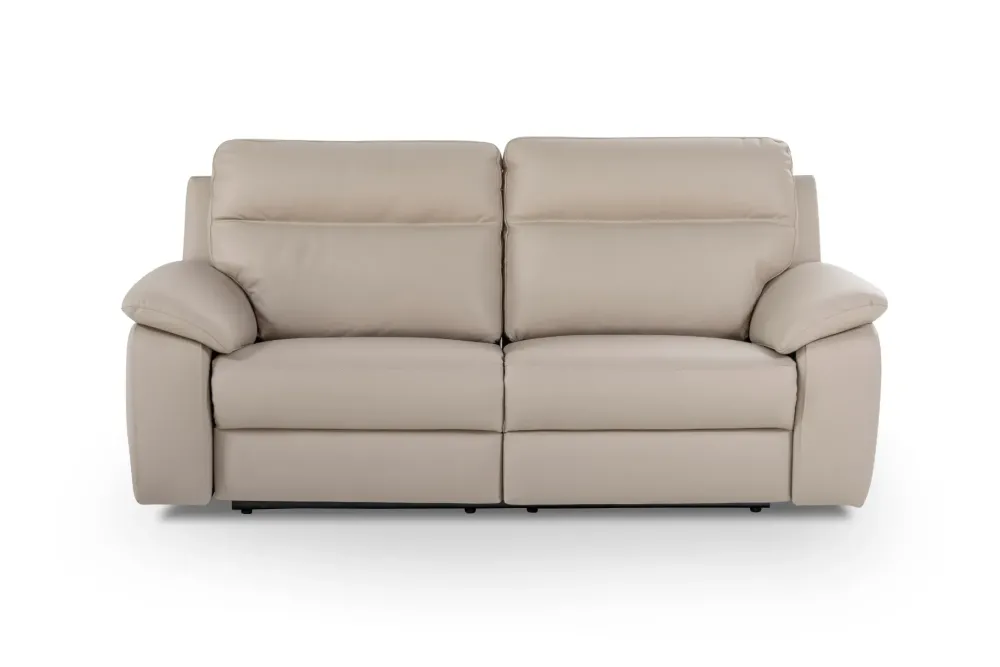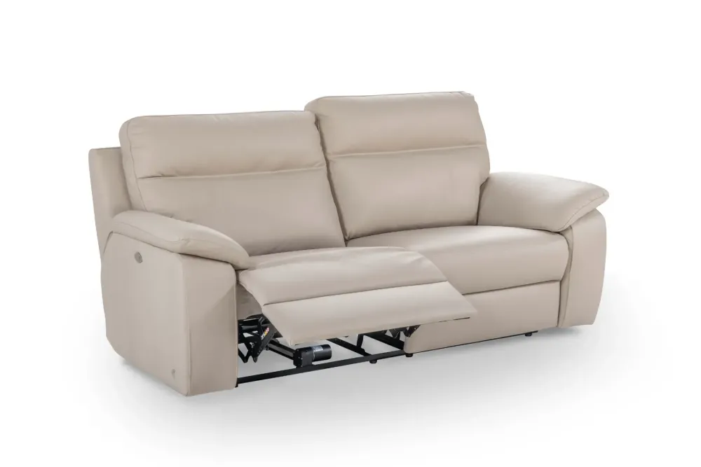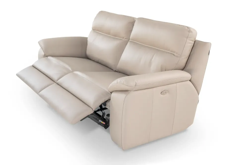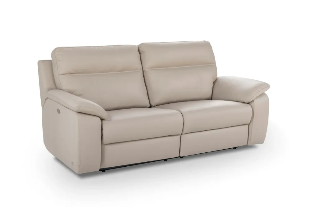 Il divano Mara è un’ottima offerta commerciale caratterizzata da un prodotto artigianale di altissima qualità ed interamente costruito in Italia- Si tratta di due sedute per una larghezza totale di cm 203 che prevede i 3 posti- Le due sedute sono però reclinabili in posizione Relax grazie ad un movimento elettronico controllato da un pulsante laterale. L’automazione con meccanismo metallico è studiata per durare nel tempo e scorrere con semplicità- Quando il sistema Recliner è aperto la profondità massima della seduta è cm 154. La struttura del divano è in legno di abete multistrato – Il cuscino della seduta è imbottito con poliuretano espanso ecologico .