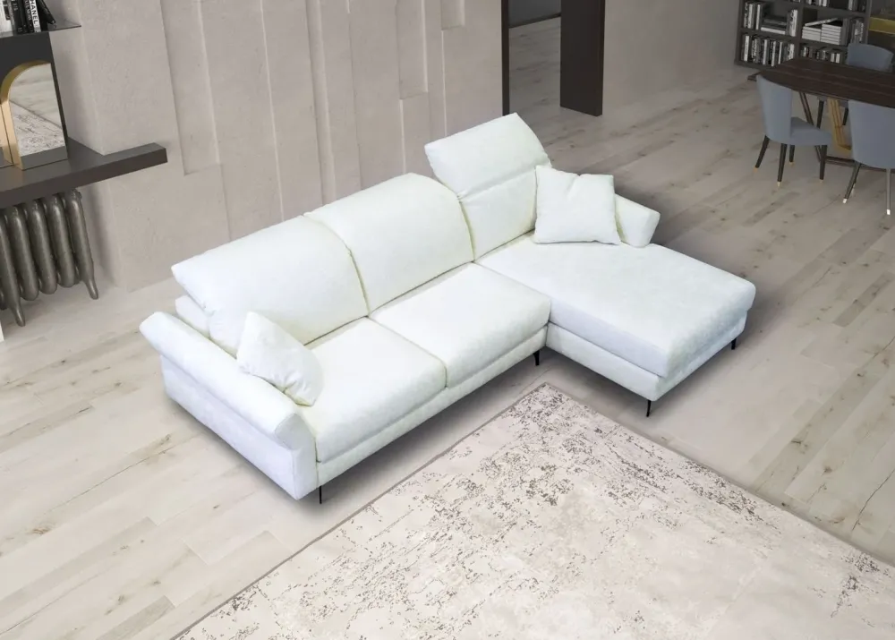 Divano con penisola Amelie di Rizzetto: imbottitura e rivestimento