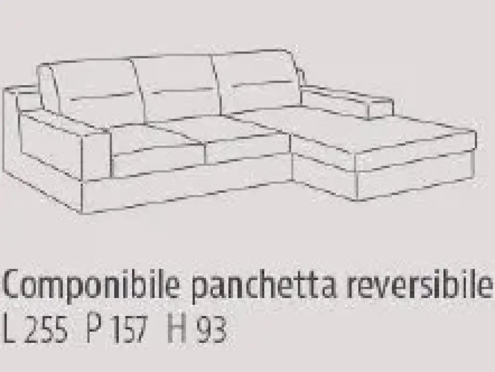 Dimensioni: COMPOSIZIONE CON PANCHETTA REVERSIBILE: L 255XPR157XH93
