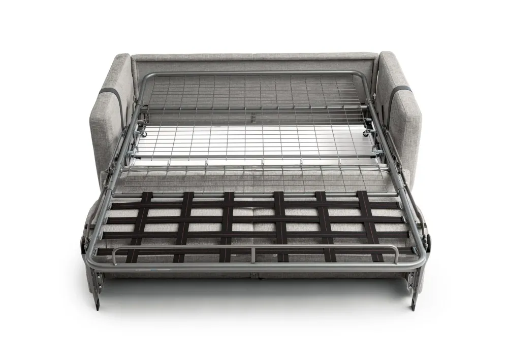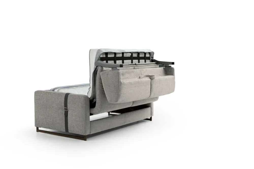 Divano letto dal design semplice e minimale ,invitante e confortevole, Maya si fa apprezzare per il design lineare corredato da piccoli cinturini in pelle che avvolgono gli esili braccioli, elementi caratterizzanti del modello. Dotato di meccanismo a ruote che permette gli spostamenti semplici e veloci. Un insieme di grande effetto e di estrema comodità. Il divano misura L 206 cm P 98 (aperto P 209 cm). Monta una rete da 160 x 195 ed è già dotato di rivestimento copri rete e materasso in poliuretano espanso h 16 cm con top in memory foam. Il rivestimento in tessuto è completamente sfoderabile.
