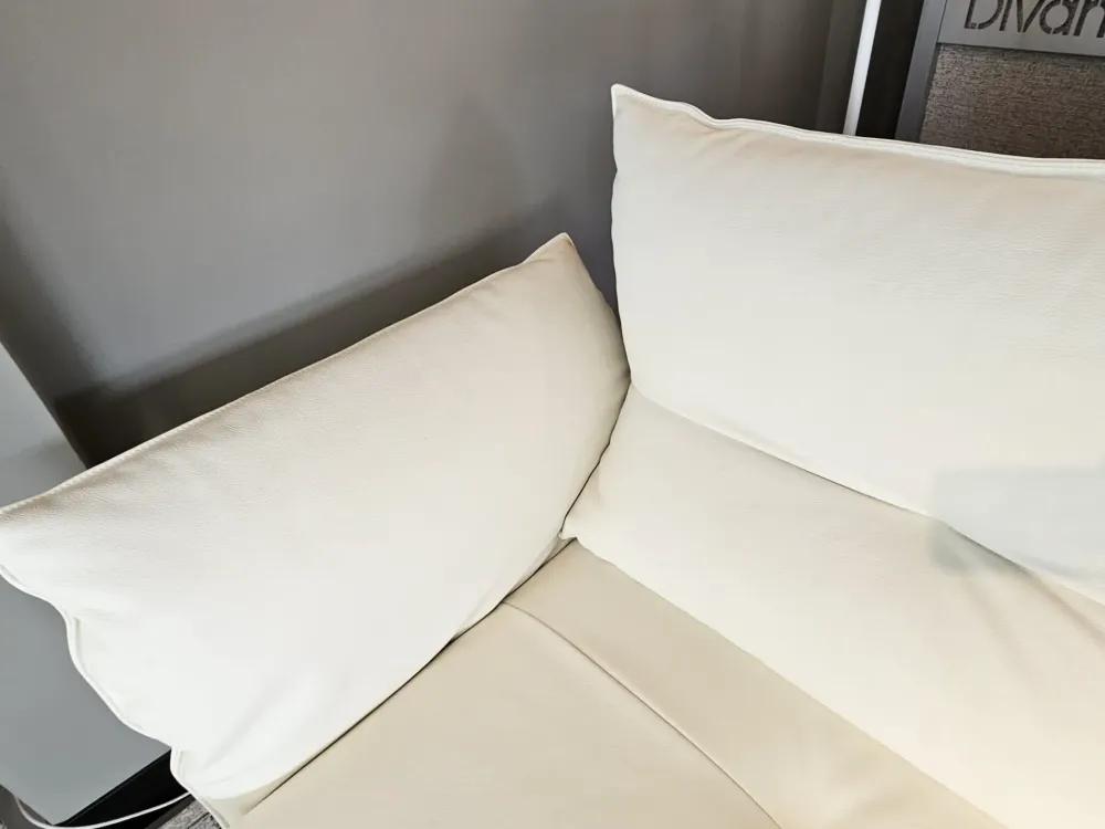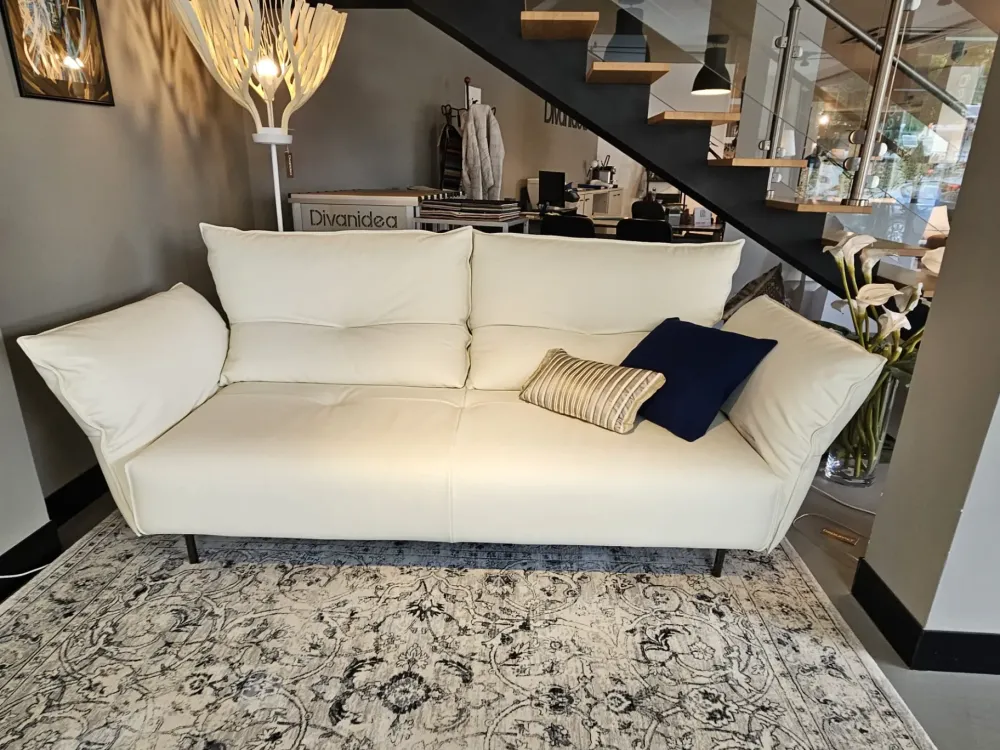 Divano in pelle bianca cm. 218/252*95*h.95.
